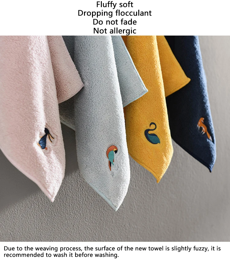 1. Превосходный коралловый флис, 7 раз Впитывающее волокно 2. Супер Впитывающая мощность, быстросохнущая 3. Вышивка в виде зоопарка, оригинальный дизайн, различные цвета 4. Подвесная веревка, удобная и выразительная 5. Аккуратные края, не линяют