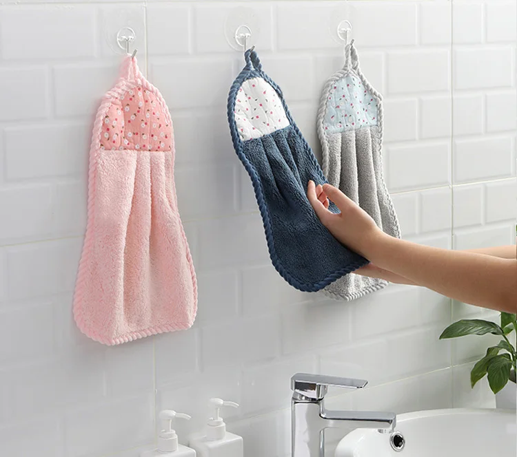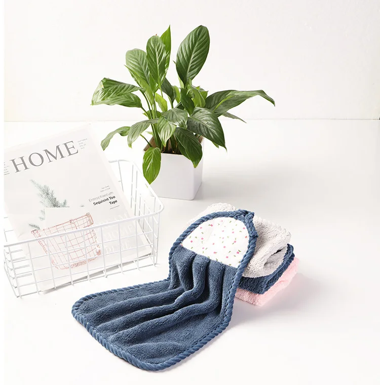 Наименование: подвесная полотенце Материал: коралловый флис Цвет: розовый/серый/синий Размер: около 23*37 см Вес: около 28 грамм