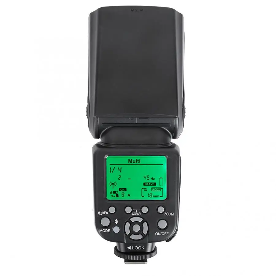 GN 58, 180 мм, ISO 100, поддерживает несколько режимов вспышки: TTL/ M/ MULT/ S1 / S2 / Master/ Slave. Высокочувствительный Датчик поддерживает дальнюю беспроводную дистанцию запуска. Многоконтактный горячий башмак. С функцией высокоскоростной синхронизации, он поддерживает 1/8000s триггер на камеру и выключение камеры. В режиме высокоскоростной синхронизации, используя Приоритет диафрагмы для заполнения светильник для съемки, Сделайте вашу съемку более комфортной. 2,4G беспроводной мастер-контроль и раб, нет направленности, и он может быть использован для запуска и вспышки от машины. Подходит для беспроводной вспышки камеры Canon, реализуется TTL, ручная и частотная вспышка. 0,1-3s время рециркуляции, поддерживает высокоскоростную непрерывную съемку. Поворотный ЖК-экран четкий для отображения нескольких показаний, кнопки и ручка могут помочь вам быстро и легко настроить различные настройки. С помощью стробоскопа можно использовать несколько вспышек для перемещения нескольких изображений объекта по фотографии.
