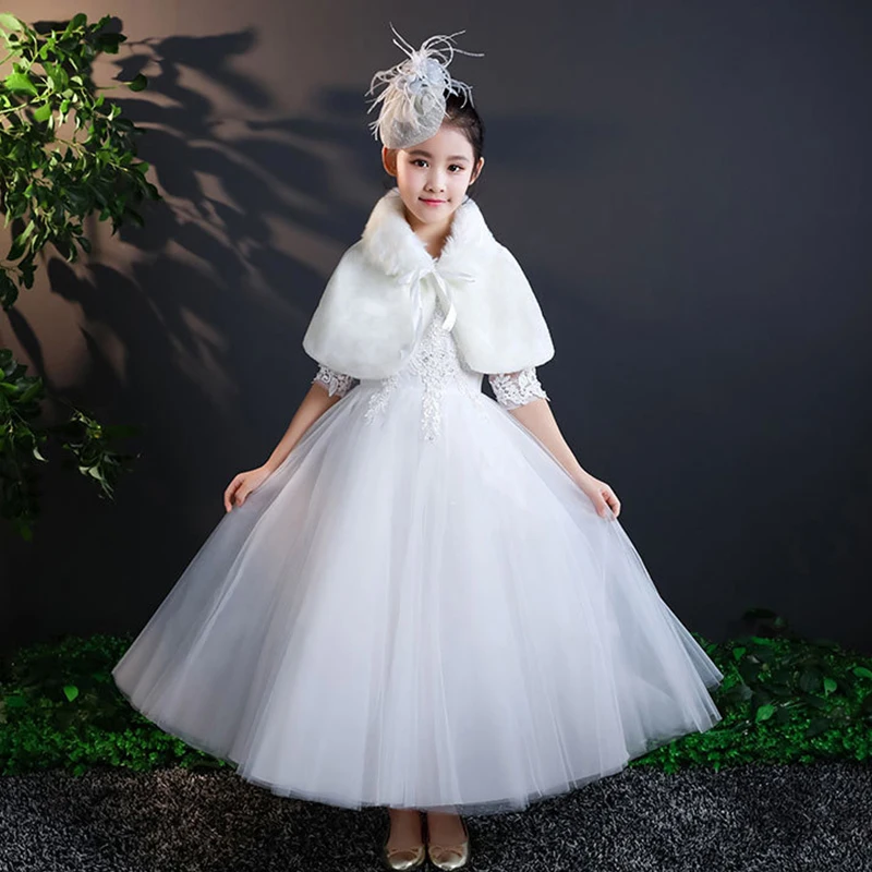 Свадебное болеро для девочек зимние пальто детские накидки из искусственного меха для свадьбы, теплые накидки, шаль, болеро, вечерние платья для маленьких девочек, накидка-болеро