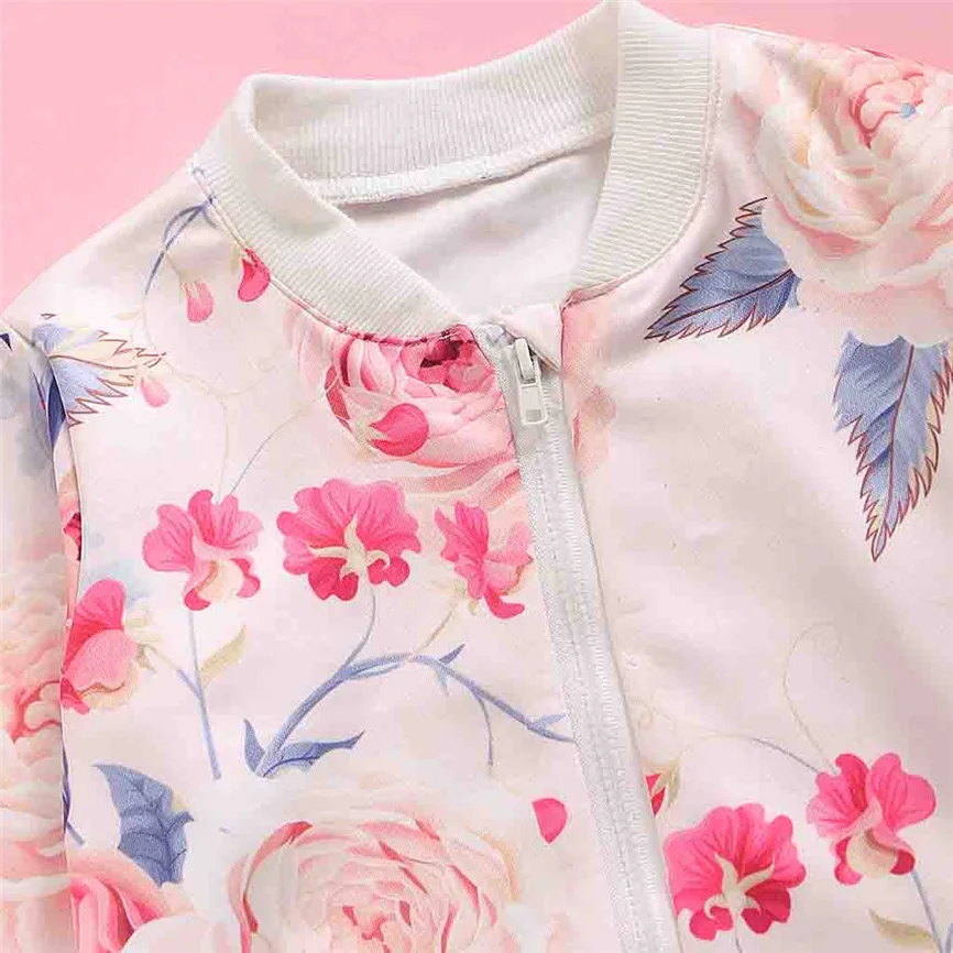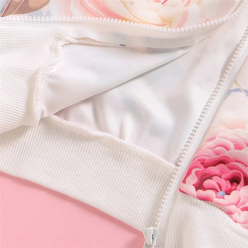 Топы на молнии с длинными рукавами и цветочным принтом для маленьких девочек; Толстовка; Куртка