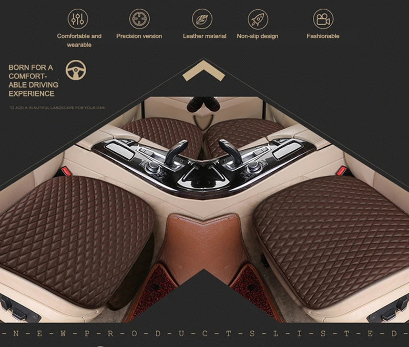 Кожаный чехол для автомобильного сиденья из трех частей, нескользящий, не привязывающийся, одно Автокресло, четыре сезона, без спинки, универсальный размер, подушка для сиденья