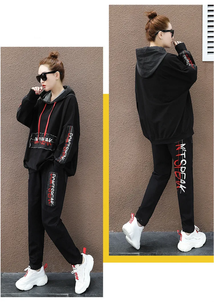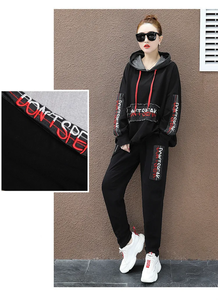Весенние корейские комплекты из двух предметов с вышивкой и капюшоном