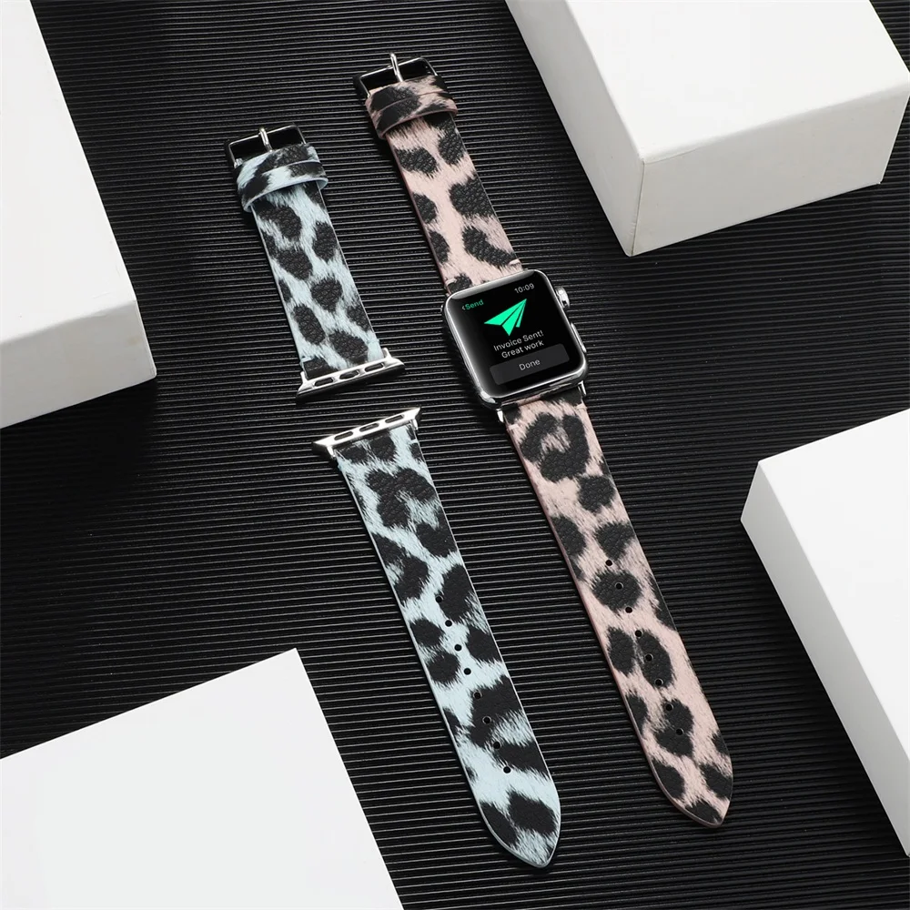 40 мм 44 мм 38 мм 42 мм кожаный ремешок для Apple Watch Series 5 4 3 2 с леопардовым принтом браслет для iWatch браслет