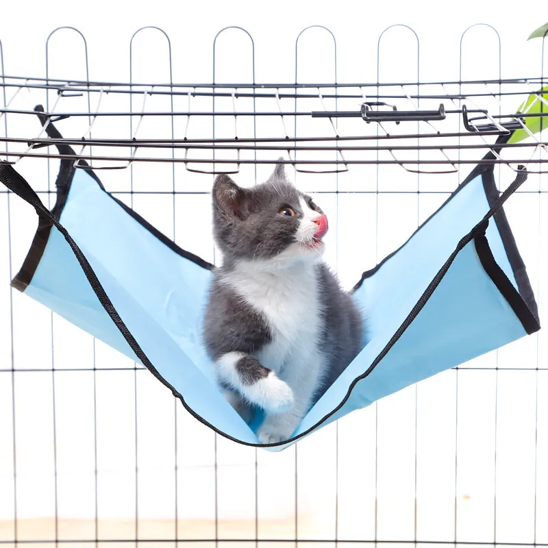 Этот гамак для кошек изготовлен из водонепроницаемой ткани Оксфорд и обладает хорошей водонепроницаемостью. И его можно повесить на стулья, диваны, клетки и т. Д., что очень удобно.