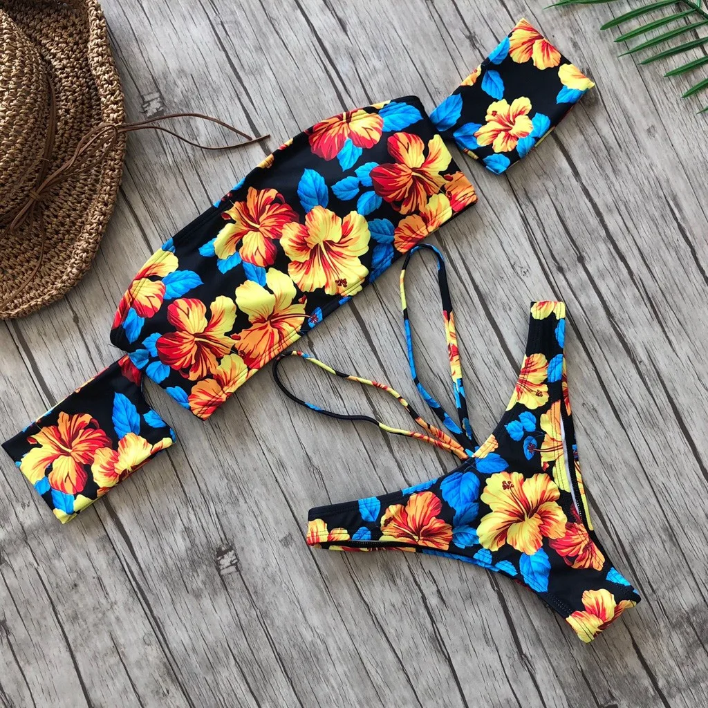 Сексуальный купальник из двух частей, Женский бандажный бикини с принтом, комплект с высокой талией, бразильский купальник, пляжная одежда, купальник, летние купальные костюмы