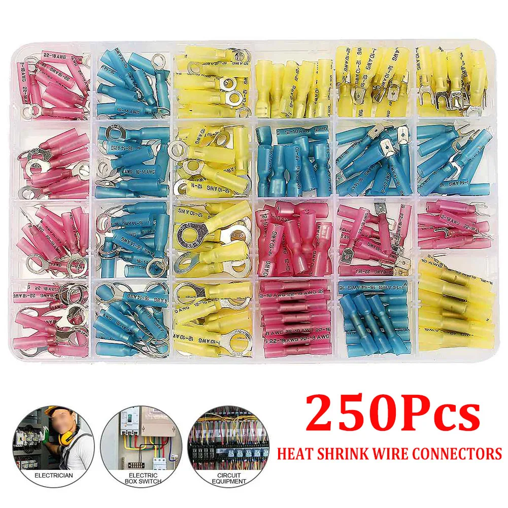 Всего 250 штук термоусадочного провода, комплект коннекторов разных размеров