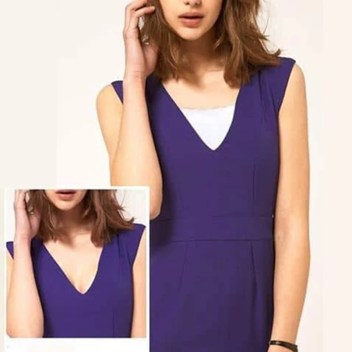 1. Просто прижмите Этот невидимый бюстгальтер к лямке бюстгальтера, чтобы создать кружевной жилет без громоздкости, поднимите его вверх и вниз, чтобы контролировать необходимое покрытие, И Используйте его для регулировки выреза топов и платьев с глубоким вырезом.
