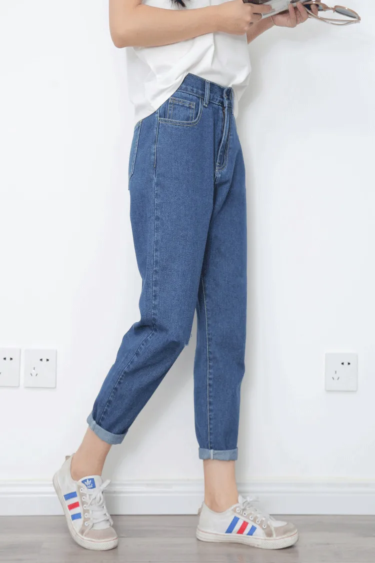 Винтажные женские джинсы для женщин в стиле бойфренд мама джинсы с высокой талией синие повседневные узкие брюки корейские джинсы femme