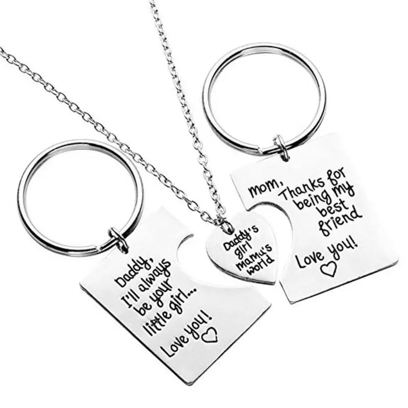 3 шт./компл. кулон с надписью «Daddy Girl Mama World», ожерелье с сердечками из титановой стали, простые кольца для ключей для мамы, папы и детей, ювелирные изделия, подарки
