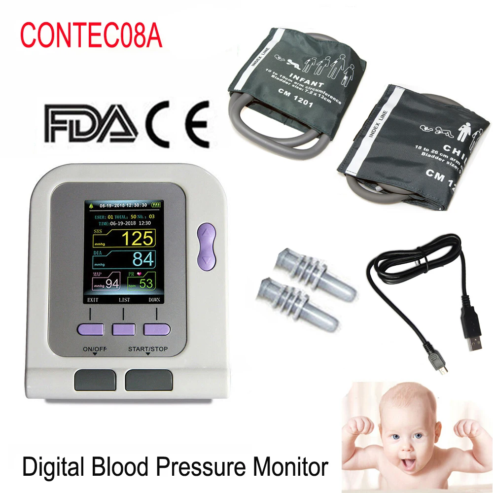 1X CONTEC08A электронные приборы для измерения кровяного давления 1X Размер 10 до 19 см детская манжета 1 х 18-26 см Детские/Детские манжеты 1X USB кабель 1X Руководство пользователя