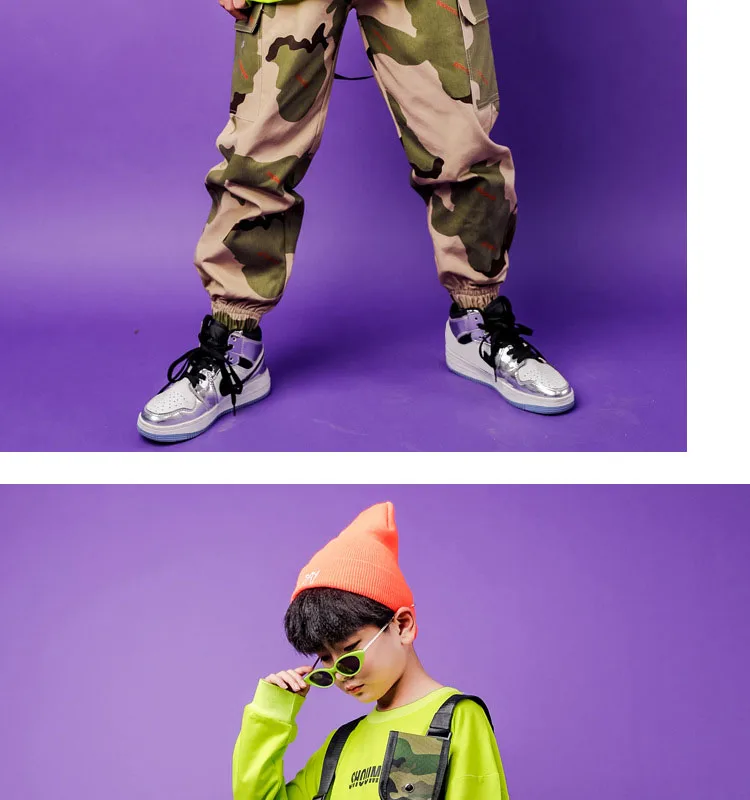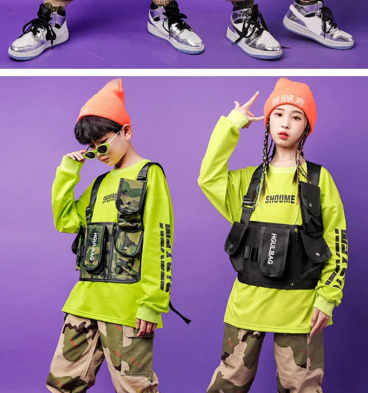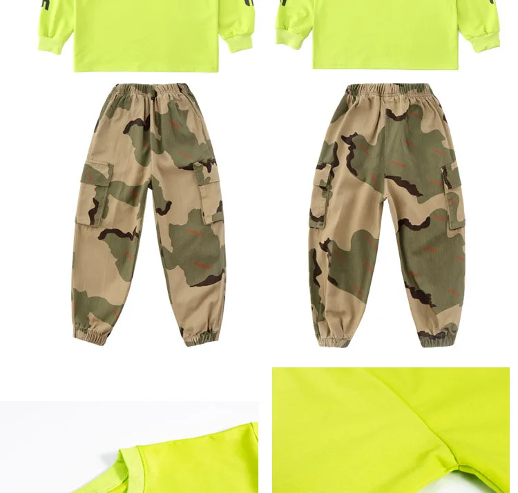 Girls Hip Hop Clothing Green Hoodies Tops Camouflage pants Teenagers Jazz Dance Costume