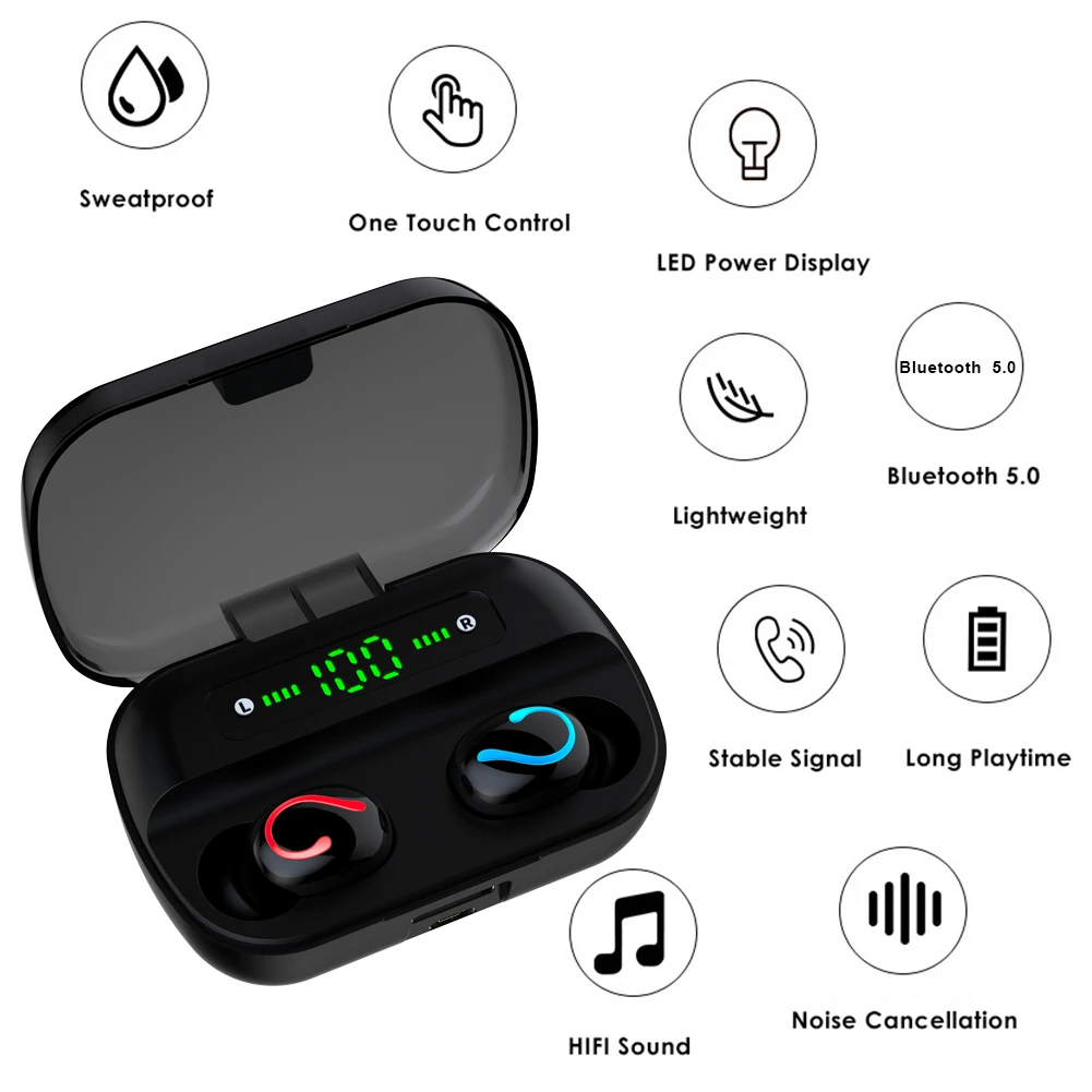 Наушники * 2, зарядный отсек * 1, зарядный кабель * 1, ушной колпачок * 4, руководство * 1