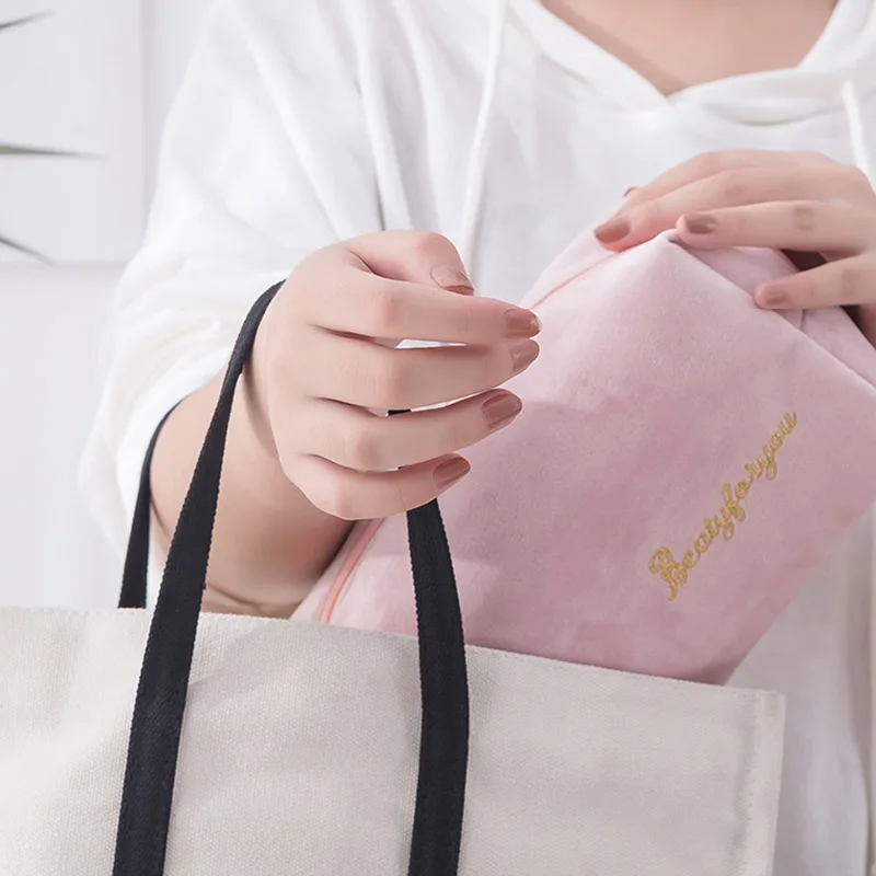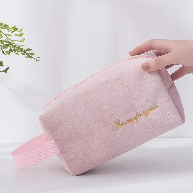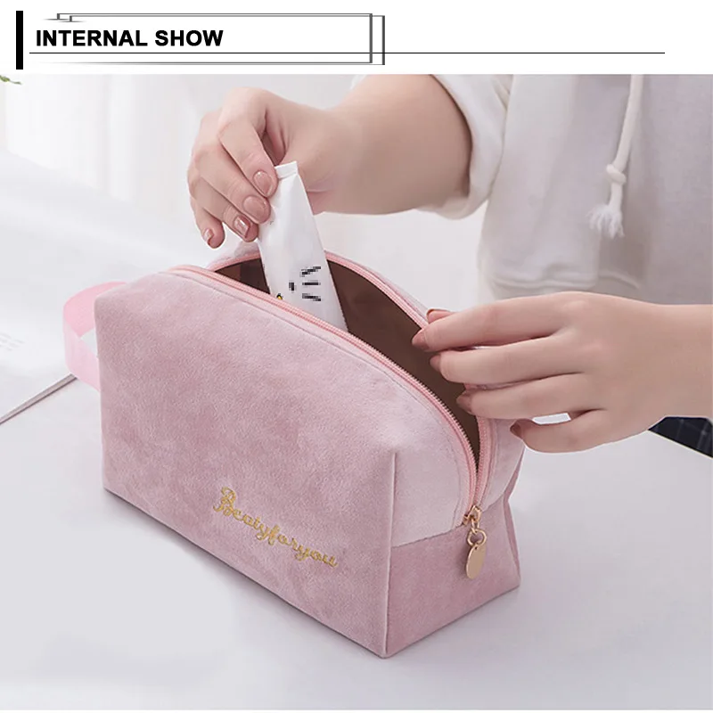 Женская маленькая бархатная косметичка, милая многофункциональная сумка для хранения на молнии, модный клатч с буквенным принтом для леди