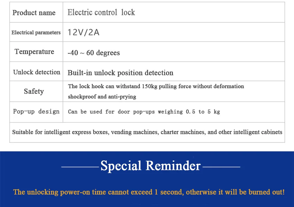 -Энергосбережение: питание при разблокировке, время менее 1 секунды, обычно закрывает дверь, не является энергопотреблением