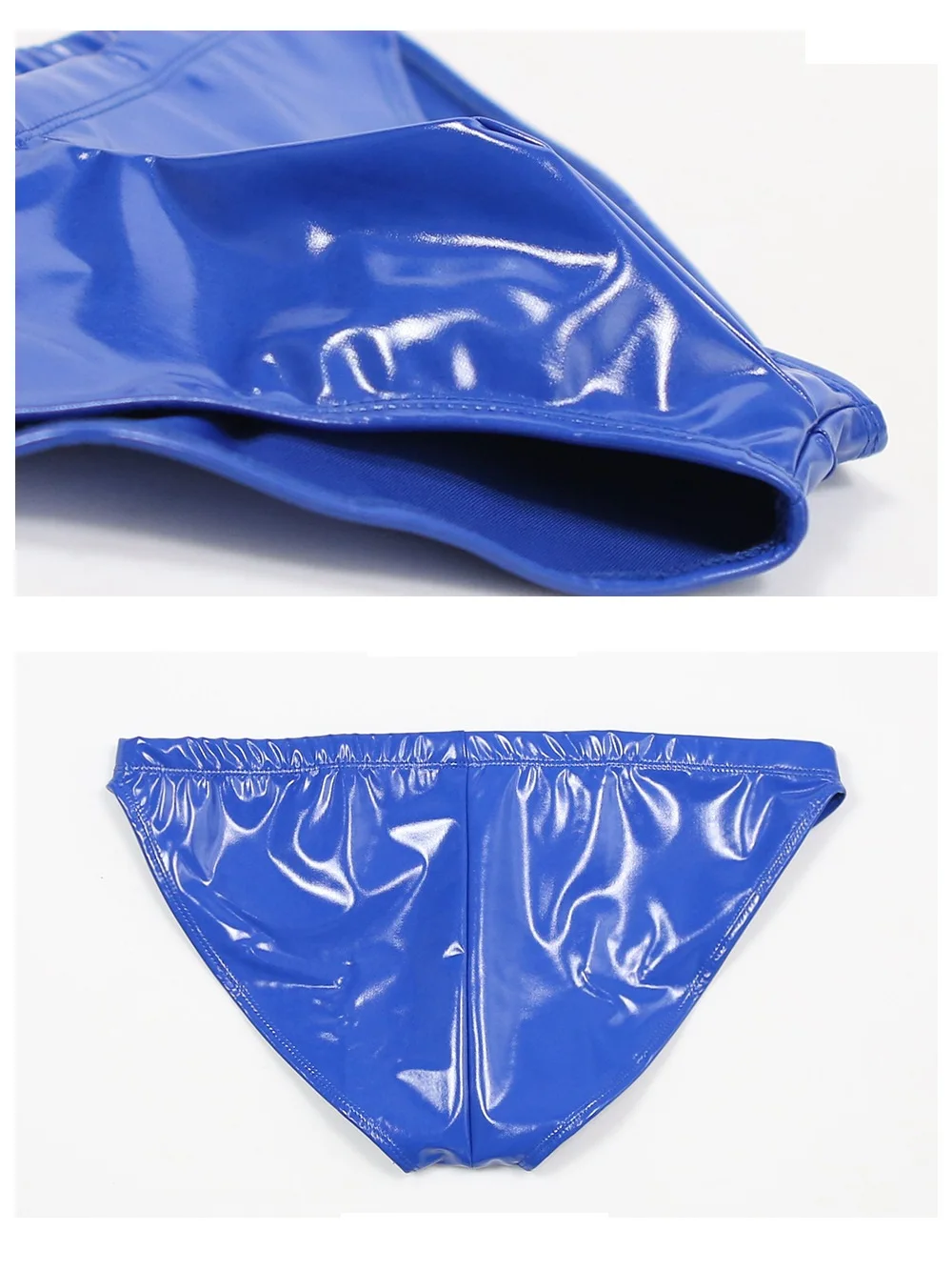 ПВХ сексуальное мужское блестящее нижнее белье с низкой посадкой U выпуклый мешок трусы стринги гладкие стринги искусственная кожа нижнее белье гей одежда трусы