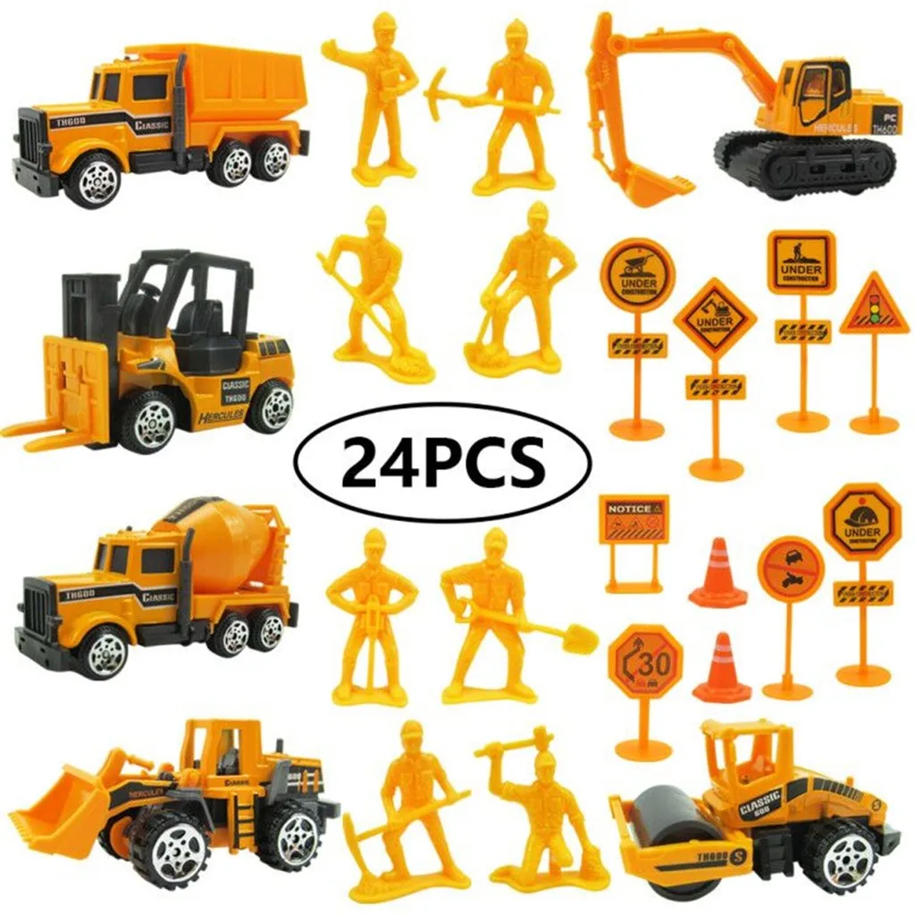 1:64 сплав инженерный грузовик экскаватор-погрузчик с 24 комплектами дорожных знаков