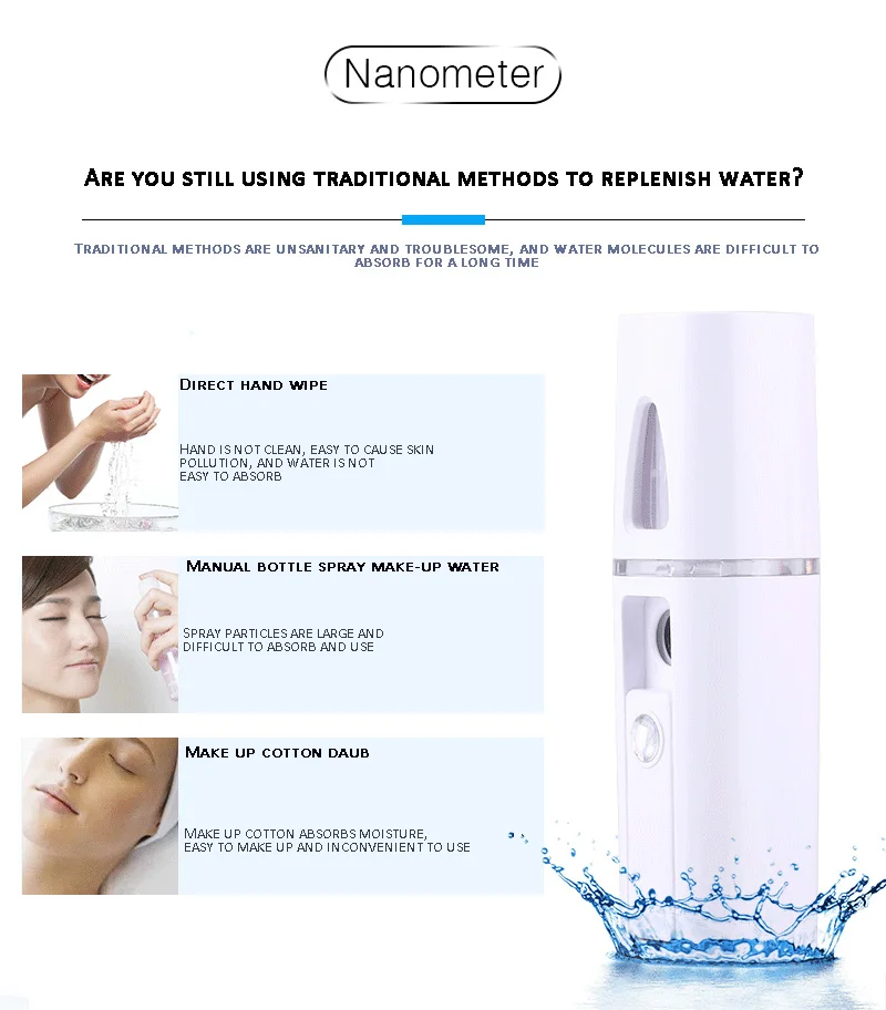 Увлажнение, Паровая поверхность, легко носить с собой Сохраняет лицо блестящим, без морщин и замедляет старение Водонепроницаемый