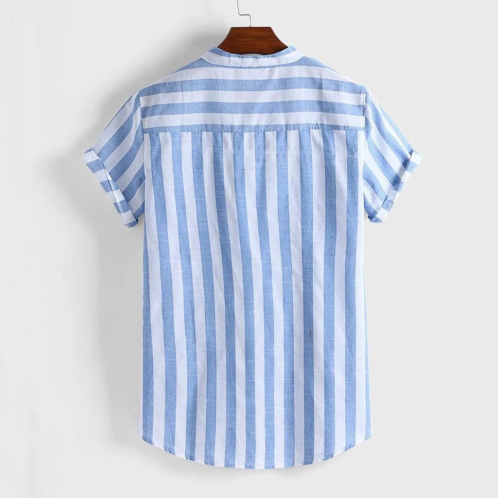 Мужская полосатая хлопковая льняная Свободная рубашка с короткими рукавами и пуговицами Henry Colla