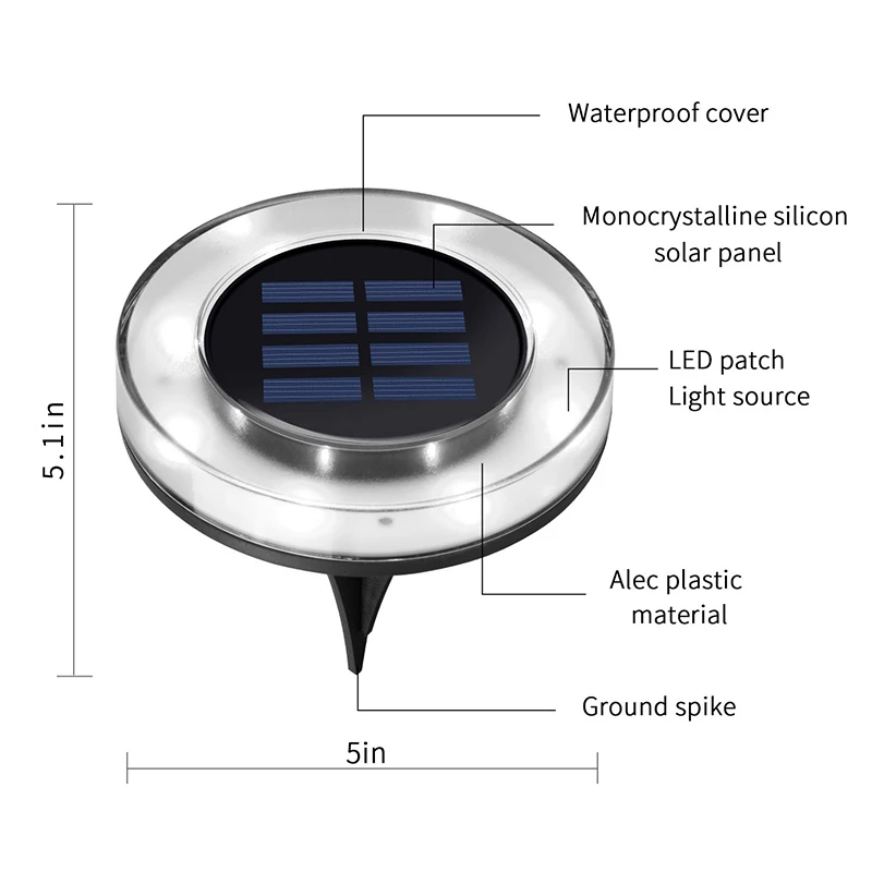 * Уличный напольный светильник, 8-светодиодный светильник на солнечной батарее, водонепроницаемый садовый подземный светильник