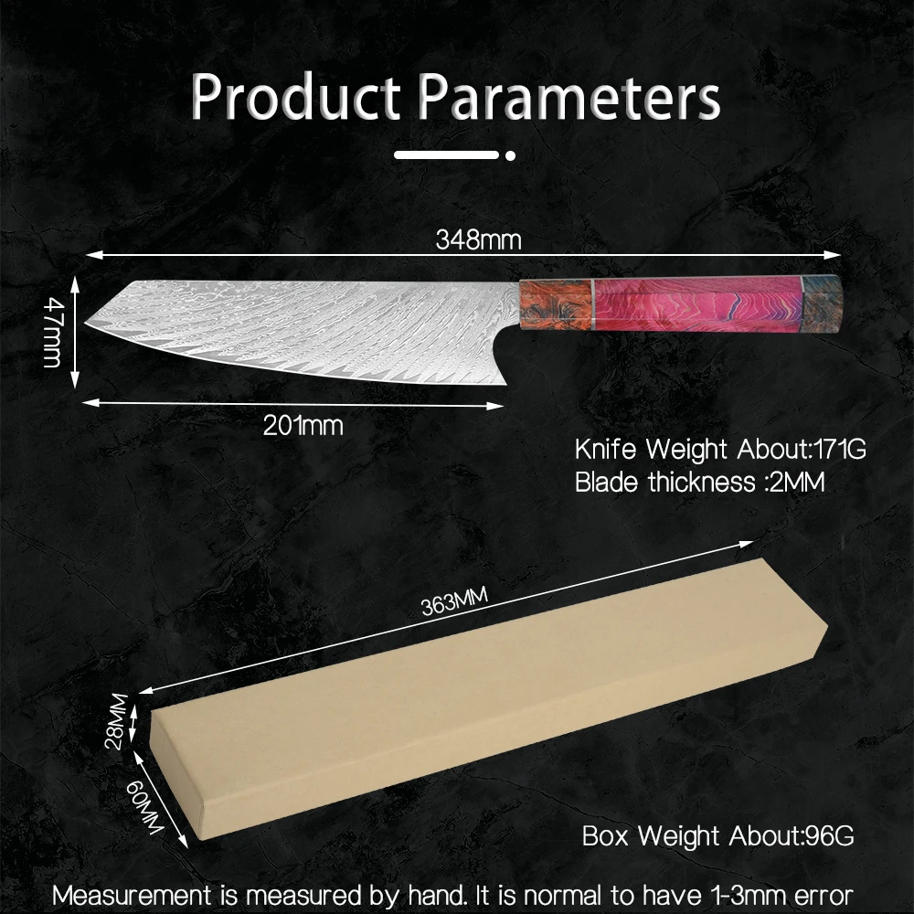 XYj Дамасская сталь шеф-повара ножи накири 67 слоев японский кухонный нож шеф-повара 8 дюймов дамасский кухонный нож затвердевшая древесина HD