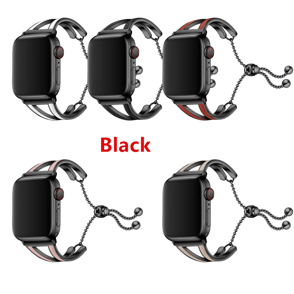 Информация о товаре: [для Apple watch1/2/3/4 серии] Материал товара: из нержавеющей стали ювелирные изделия нержавеющей стали ремень Размеры 38 мм/40 мм/42 мм/44 мм Цвет: (Цвет части), белый, черный, розовый, розовый, абрикосовый (с Корпусами) серебристый, розовое золото, черный Вес нетто: Около 26 г подходит для Apple watch все серии комплектация: 1 ремешок для часов