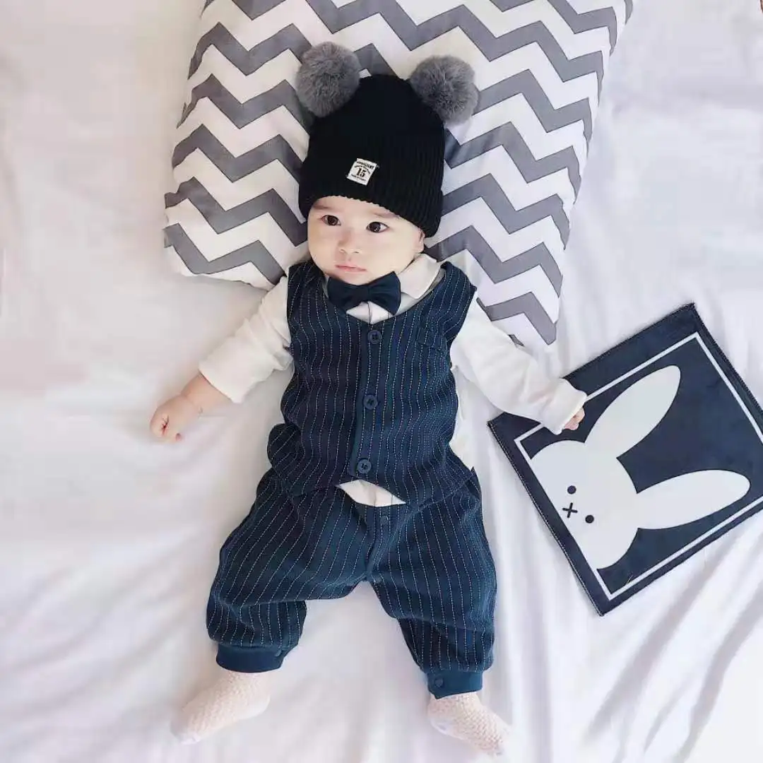 Весенне-осенний однобортный Детский костюм для скалолазания с длинными рукавами и отложным воротником; Повседневная хлопковая одежда для новорожденных в джентльменском стиле