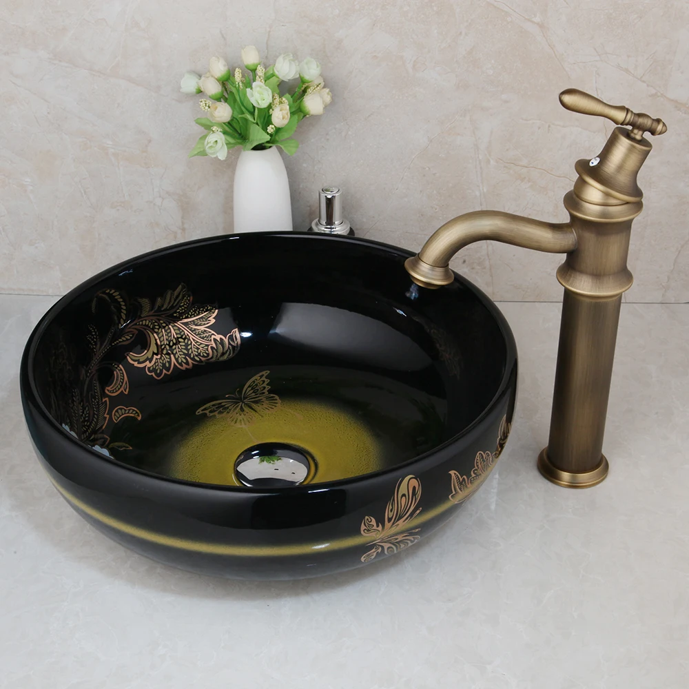 Элегантный европейский дизайн современного искусстваРоскошный негабаритных созданиеKEMAIDIАнтичная латунь смеситель кранВысококачественная конструкция из закаленного стеклаВыше счетчик установкиХромированный всплывающий слив в комплекте