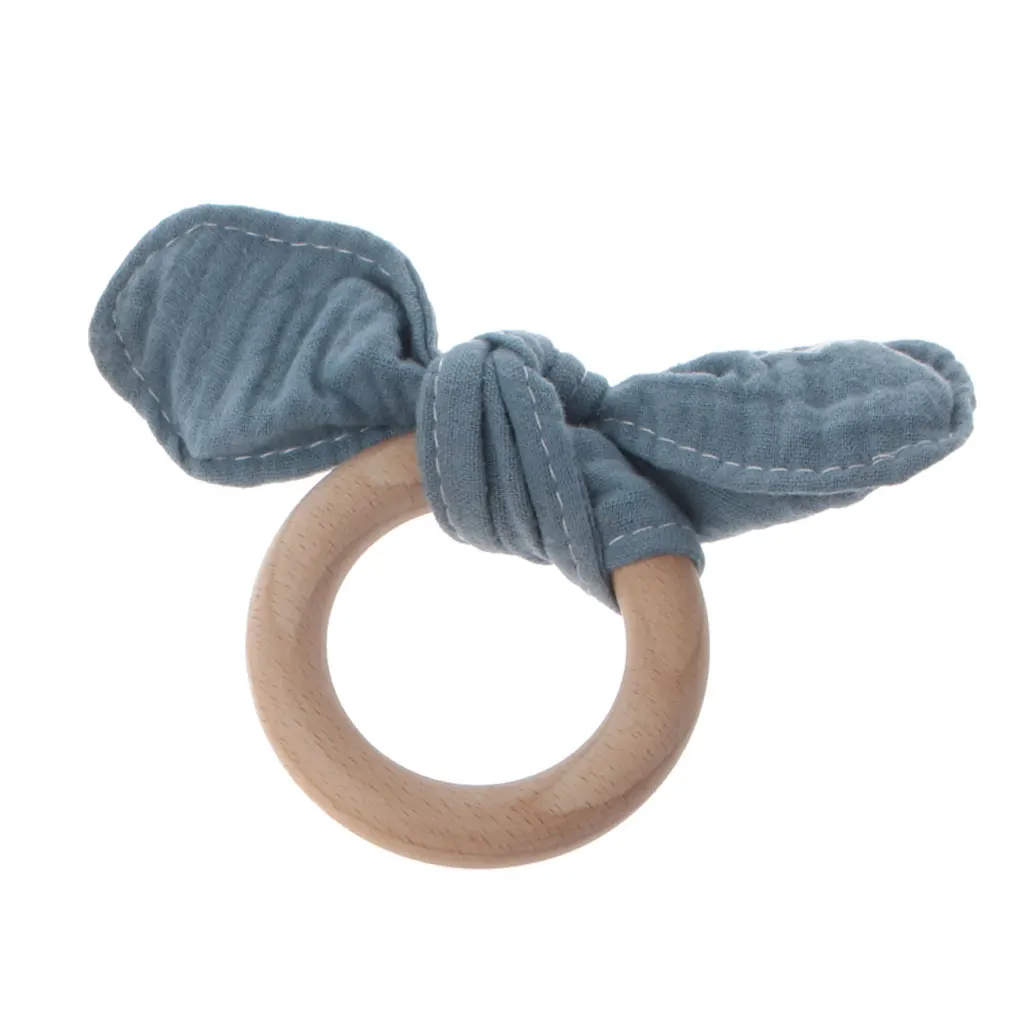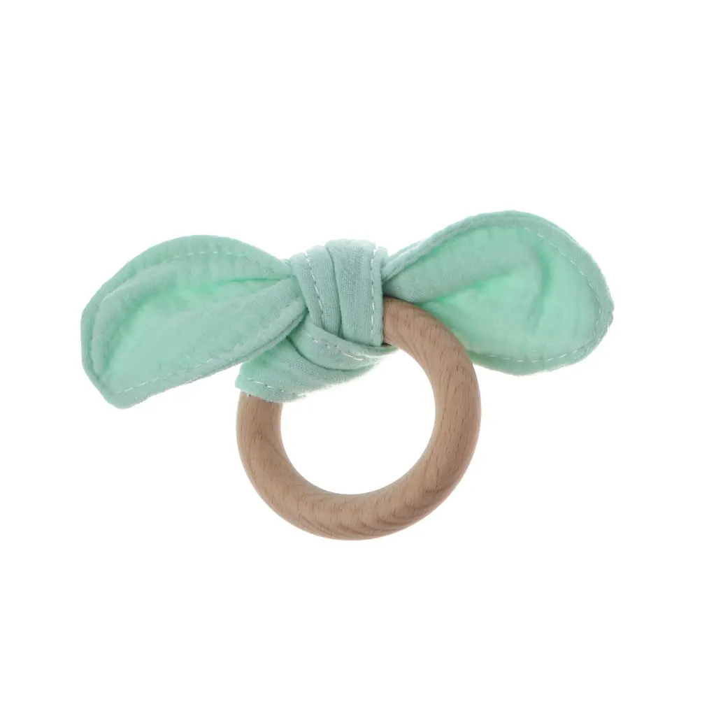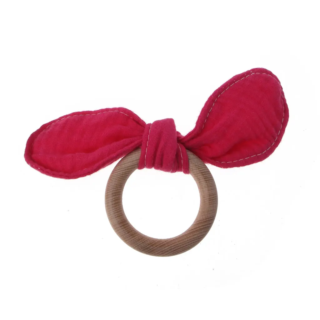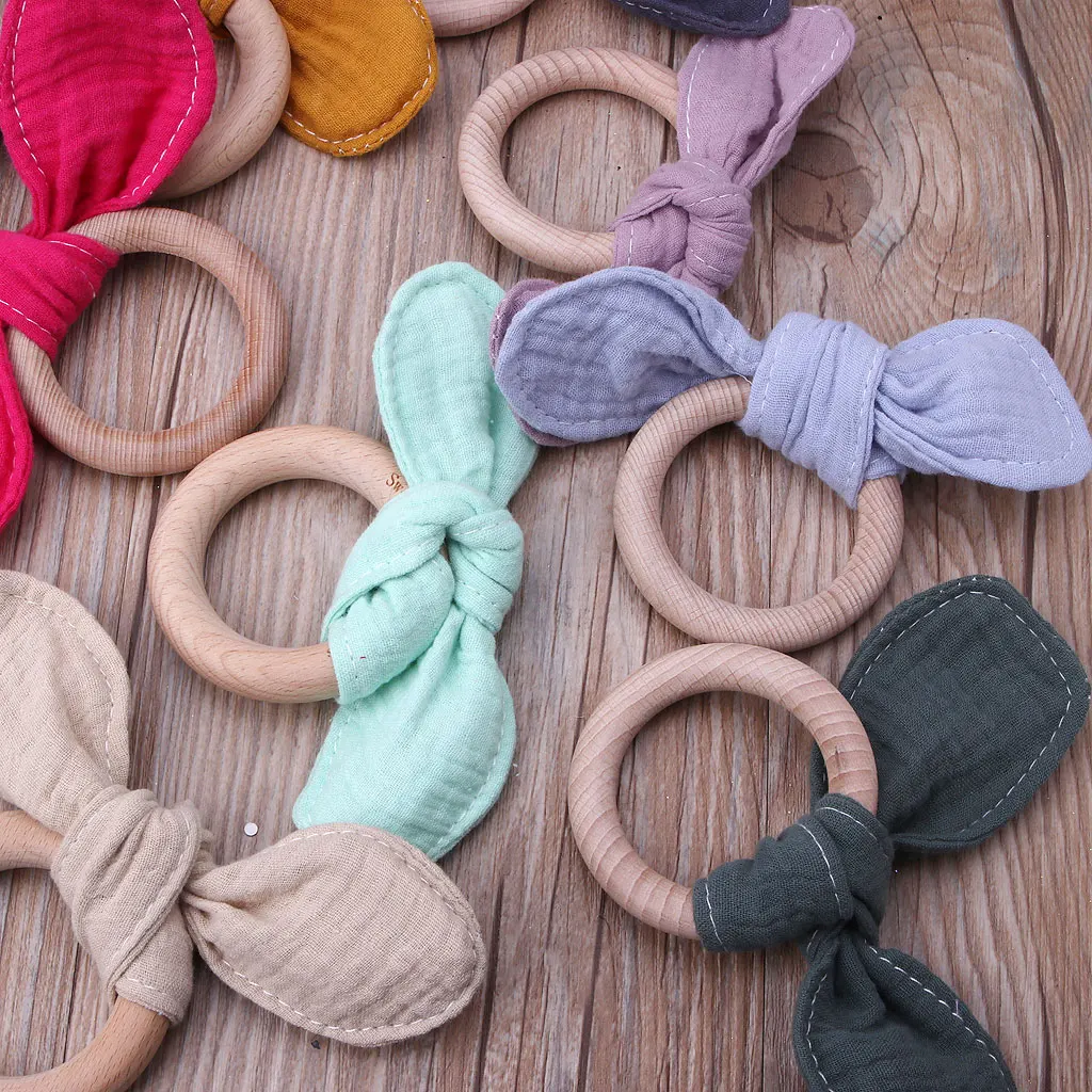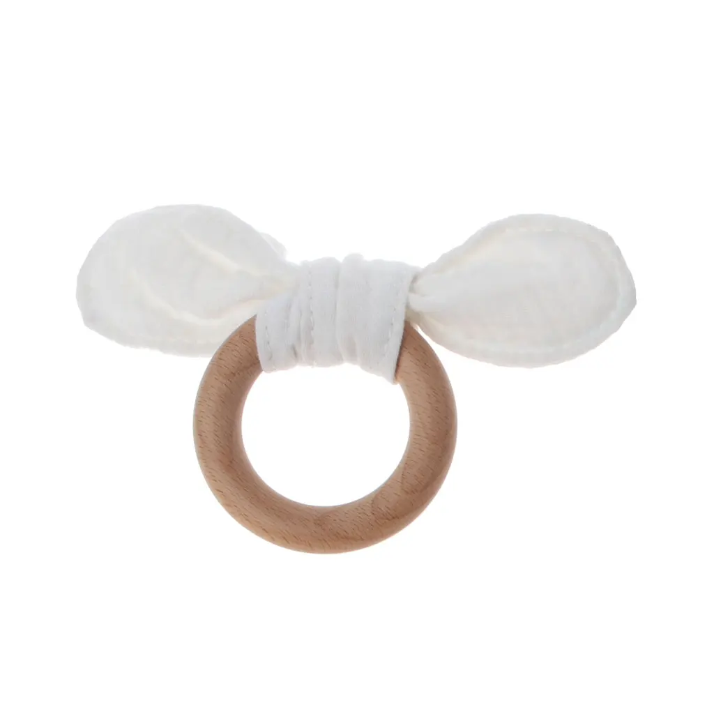 Детское кольцо с заячьими ушками для прорезывания зубов, безопасное органическое деревянное кольцо для обучения кормящих детей, игрушки для новорожденных, Детские Прорезыватели