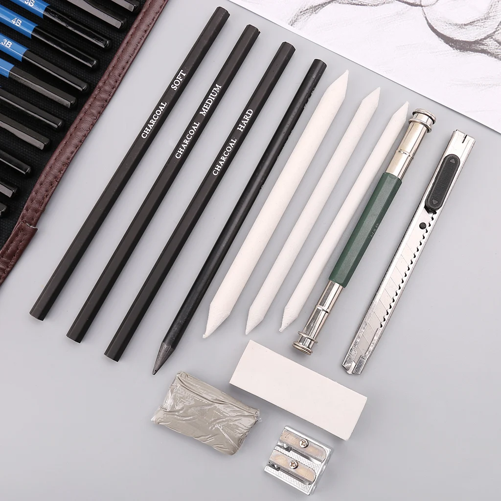 24 шт., профессиональный набор набросок рисунок, набор инструментов для рисования, графитовый уголь, карандаши, ластик, набор для рукоделия