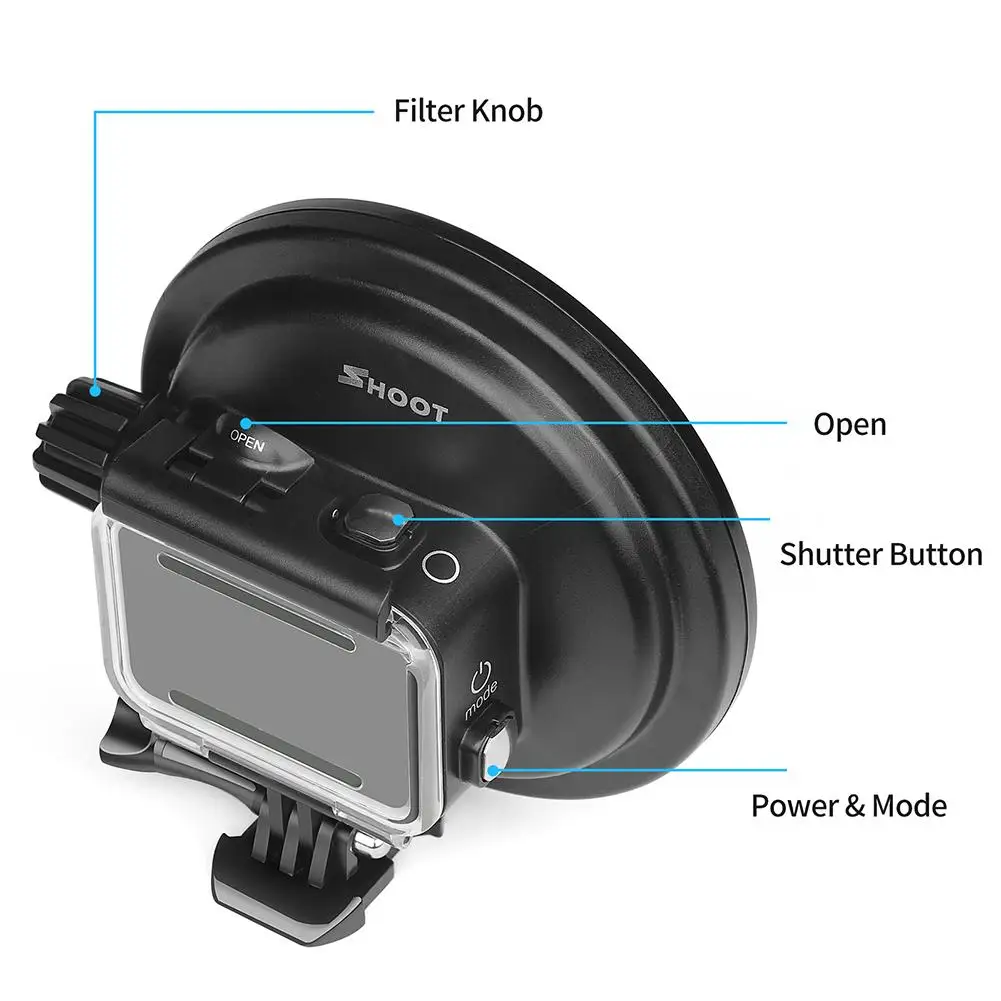 Технические характеристики: Название: купольный чехол для дайвинга Порты и разъёмы защиты чехол для GoPro Hero 5 / 6 / 7 Материал: АБС/акрил Цвет: как показано на картинке Вес (приблизительно): 398 грамм Размер упаковки (о): 14,5*13,5*7 см/5,71*5,31 * 2.76in Что позволяет достичь глубины резкости, предел водонепроницаемой функцией (приблизительно): Для использования на глубине до 45 м/984.