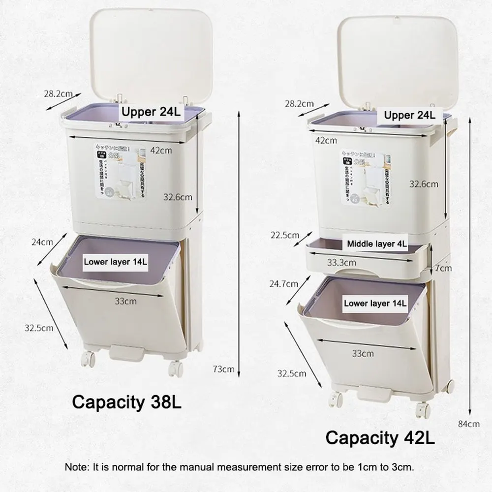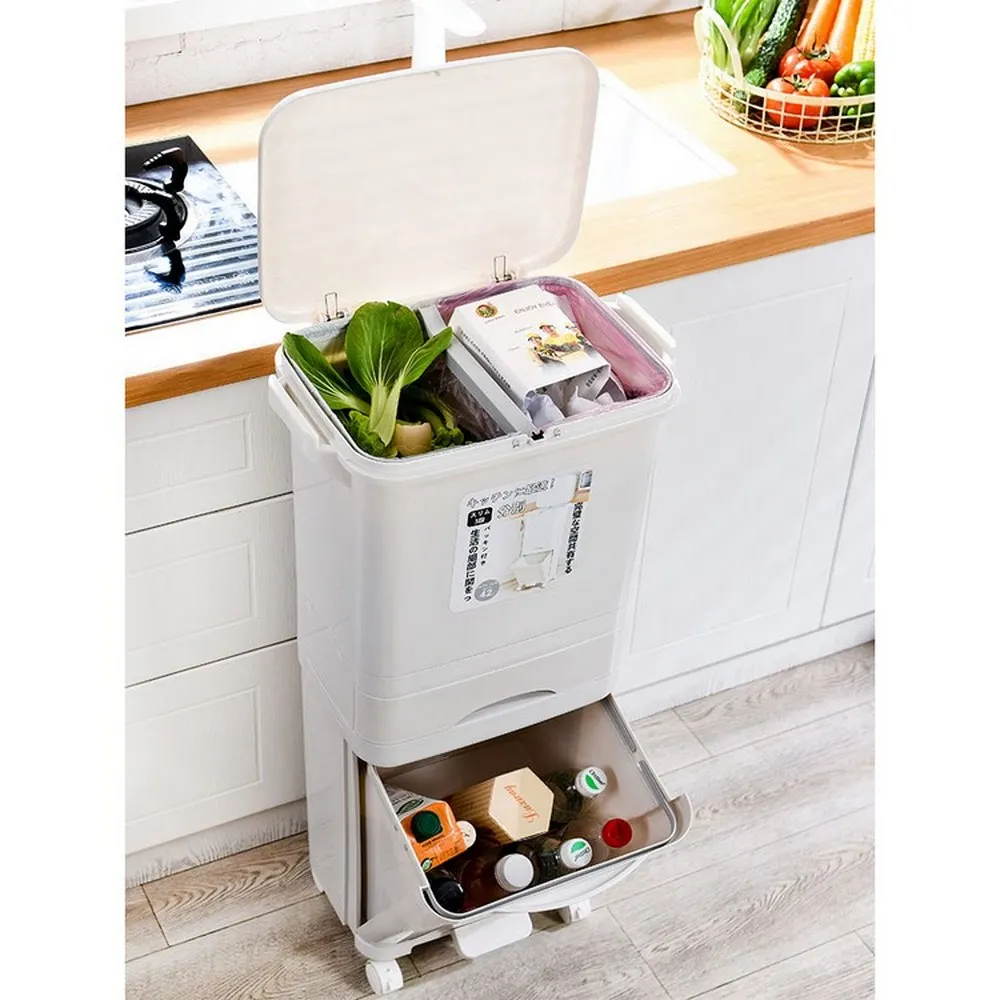 38/42L Мокрый Сухой разделения мусорное ведро для езды на велосипеде для хранения больших двухслойные мусорный бак Кухня отходов с колесом держатель для мусорного мешка