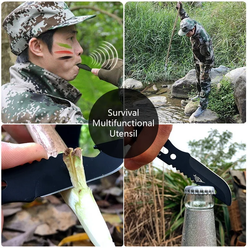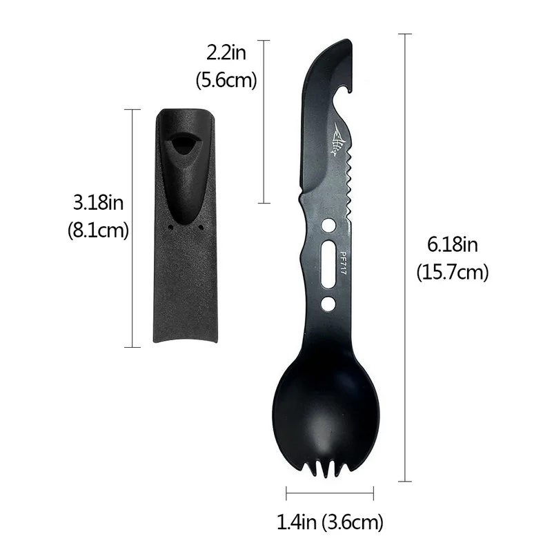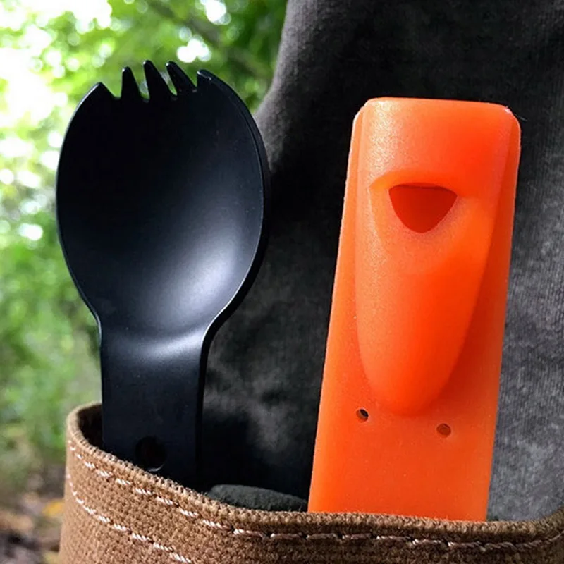 Размер: длина лезвия 5,6 см, Диаметр ложки 3,6 см, Длина свистка 8,1 см, Толщина лезвия 1,3 мм, Общая длина 15,7 см Материал: нержавеющая сталь, ПП Упаковка: нож-1 шт.