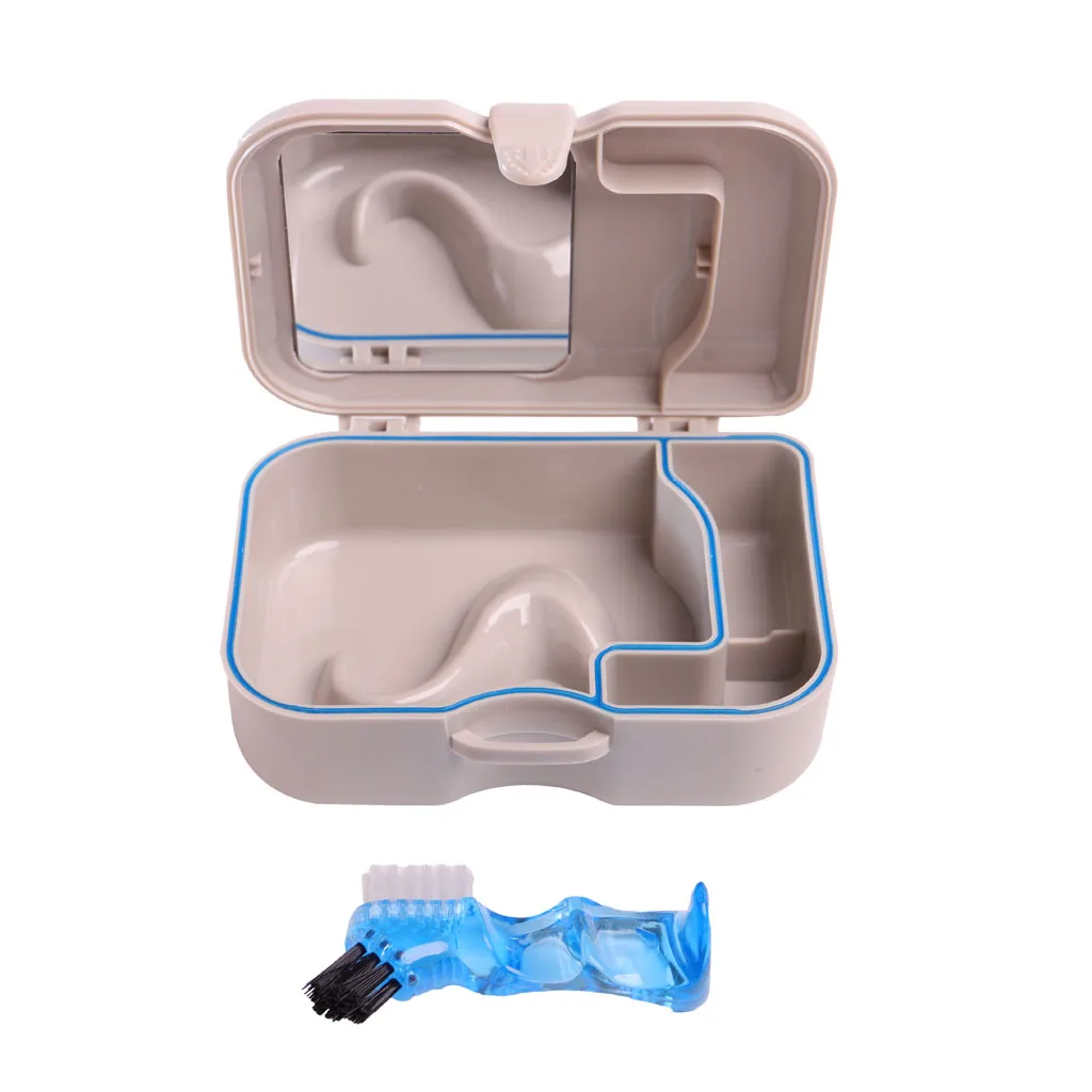 Одна пластиковая коробка для фиксации протезов с 1 зеркалом и 1 чистящей щеткой.