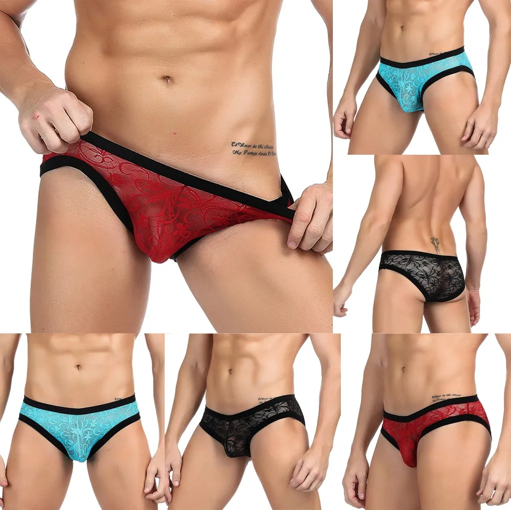 Горячее сексуальное мужское кружевное нижнее белье, трусики-бикини с прозрачной сеткой, бесшовное нижнее белье