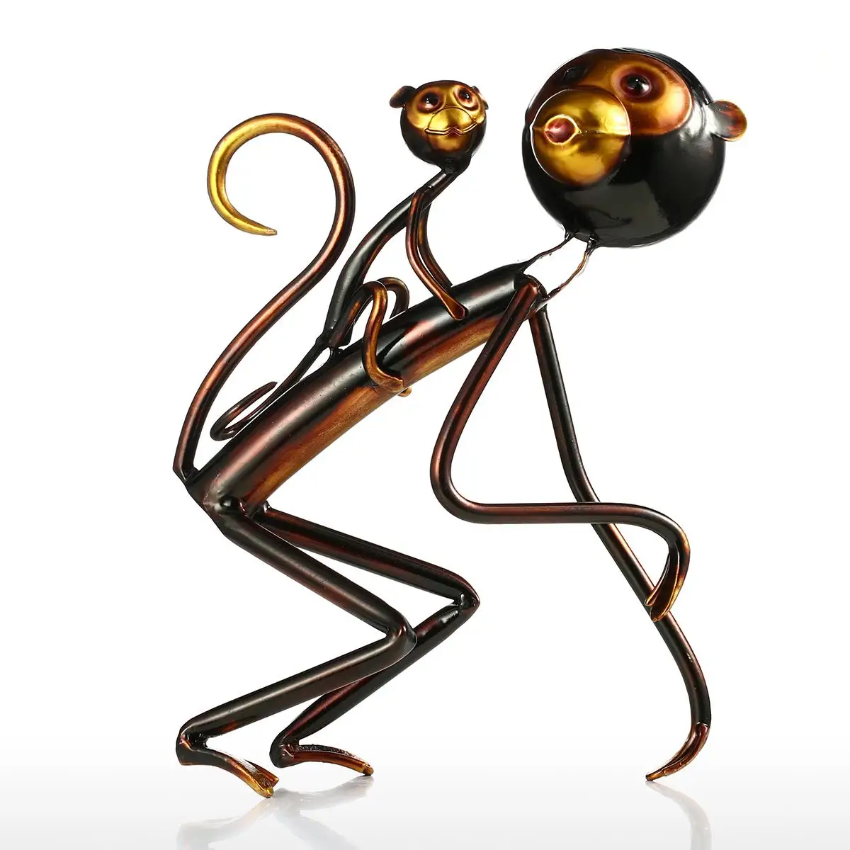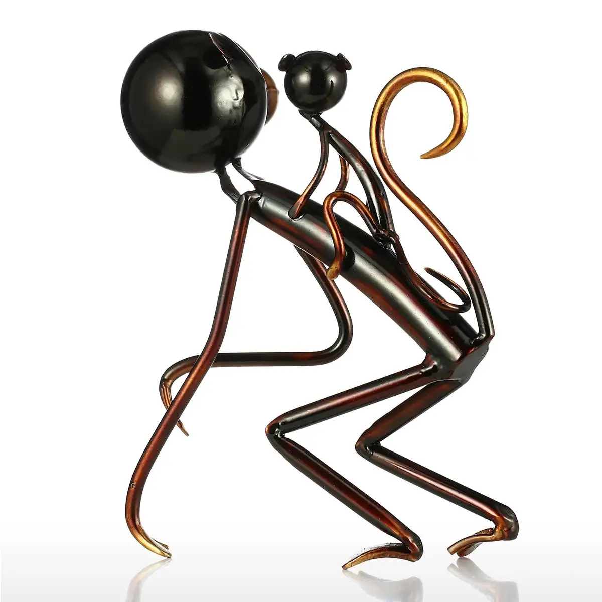 Это забавная скульптура обезьяны, которая носит своего ребенка. Он вручную сварен железными трубами различной формы и толщины, выглядит выразительным и абстрактным. Тело было обработано тонкой краской, показывающей яркий и глянцевый цвет. Подходит для всех видов интерьера: гостиной, кабинета, спальни и т. д.