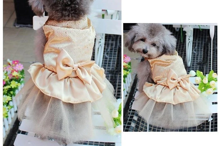 Модное платье для собак с бантом и бриллиантами вечерние, одежда для щенков