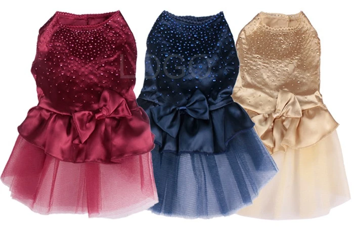 Модное платье для собак с бантом, украшенное стразами, пачка для свадебной вечеринки, платье принцессы для щенка