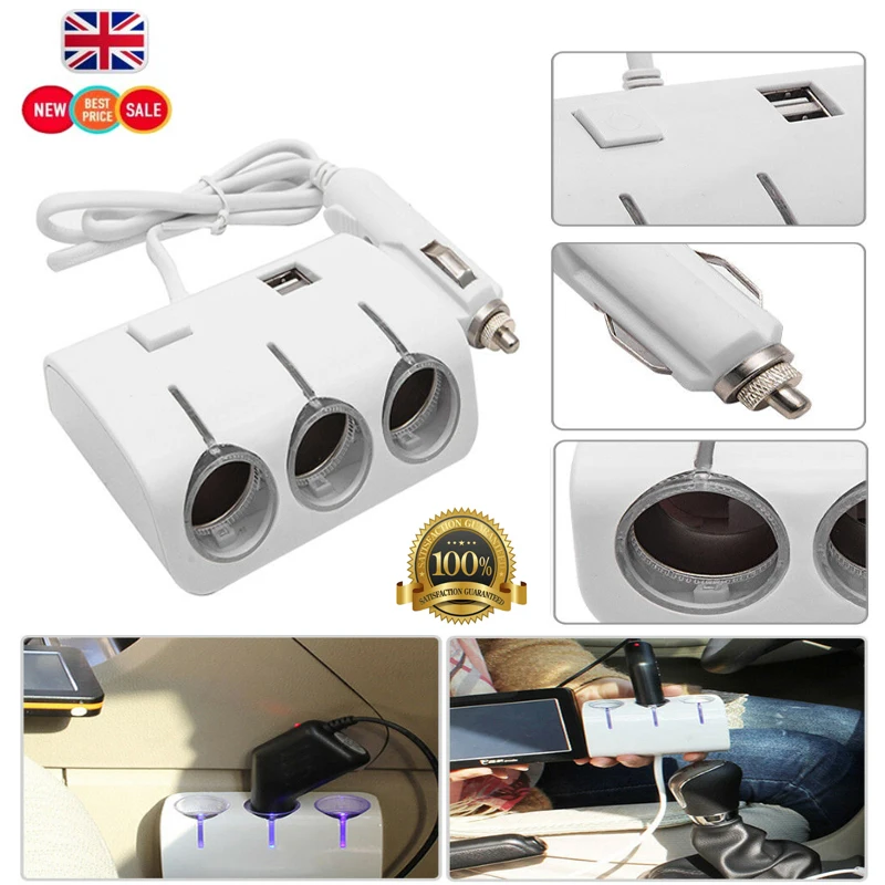 Автомобильный Зарядное устройство адаптер для автомобильного прикуривателя Мощность мульти-разветвитель на 3 Way Dual USB Зарядное устройство s 120 W с синий светодиодный индикатор светильник