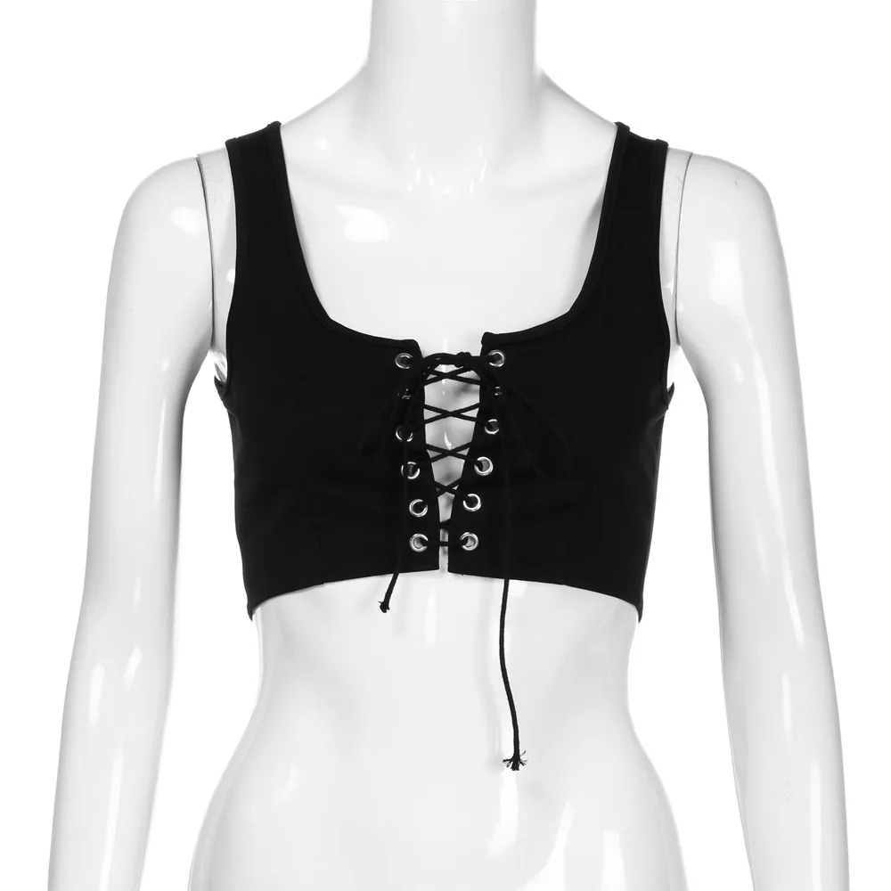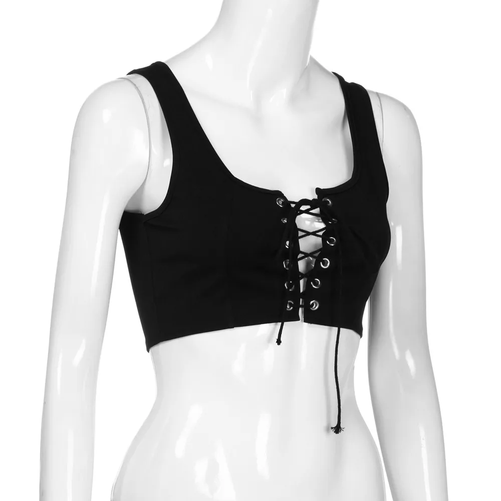 Для женщин Сексуальные без бретелек Твердые повязки Крест вверх без рукавов Короткие топы жилет