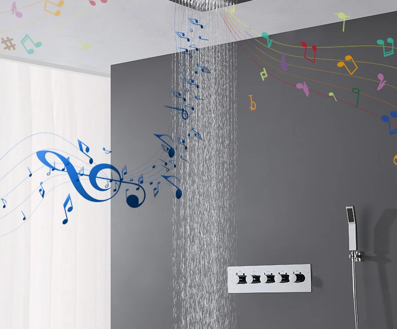 Hm Роскошная музыкальная система для душа, ванная комната, смеситель для душа со светодиодной индикацией осадков, термостатический смеситель для душа, Массажная музыка, душевые струи