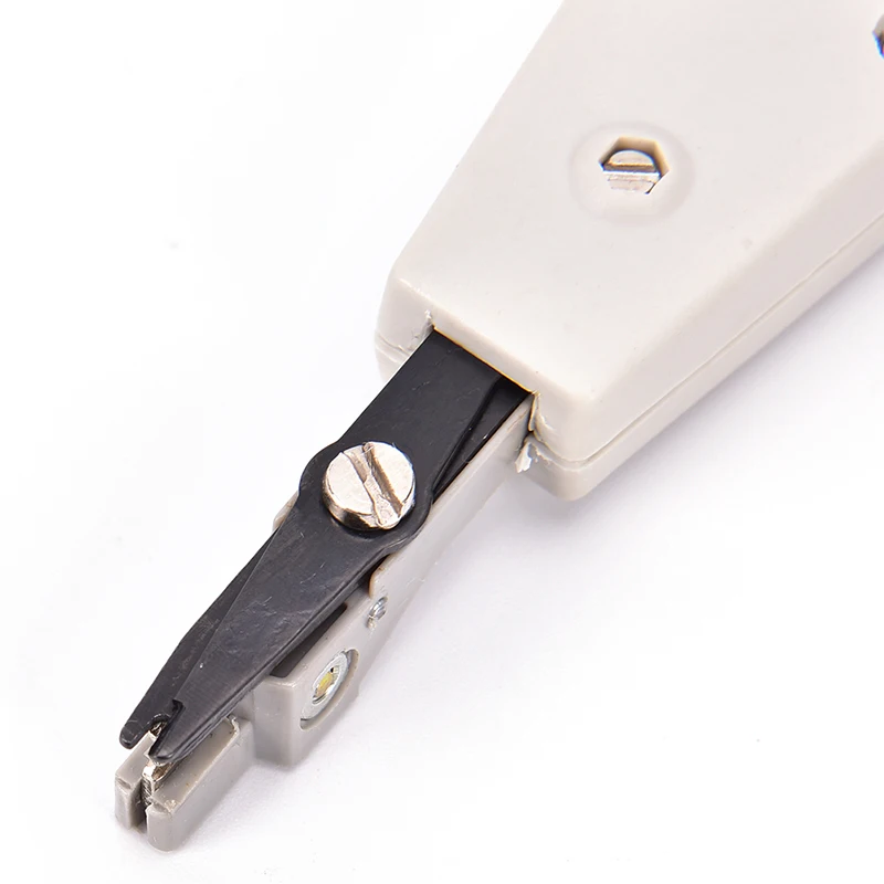 Используется для легкой установки проводов в телефонную розетку, планшайбу Cat5e или патч-панель. Включает в себя концы инструмента для резки, зачистки и вставки. Используется для UTP и FTP кабелей.