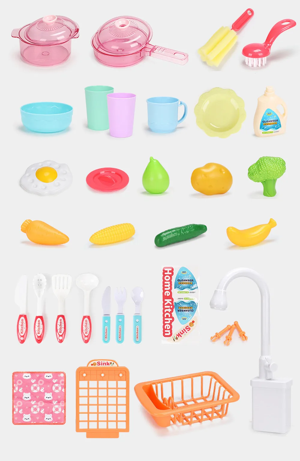 Имитация кухонного игрового набора: для одного или нескольких человек, чтобы играть в роли, которые улучшают распознавание цветов, распознавание кухонных принадлежностей и упражнения, способность к координации рук и глаз и способность Организации и хранения