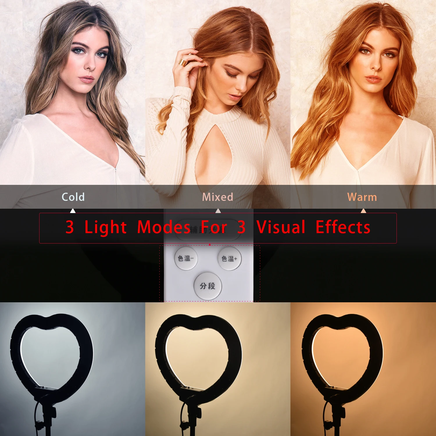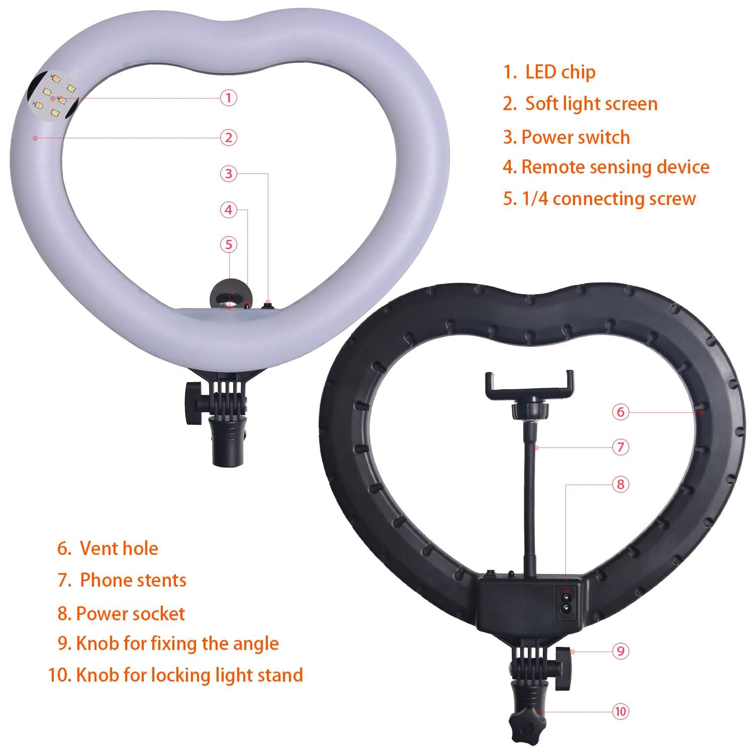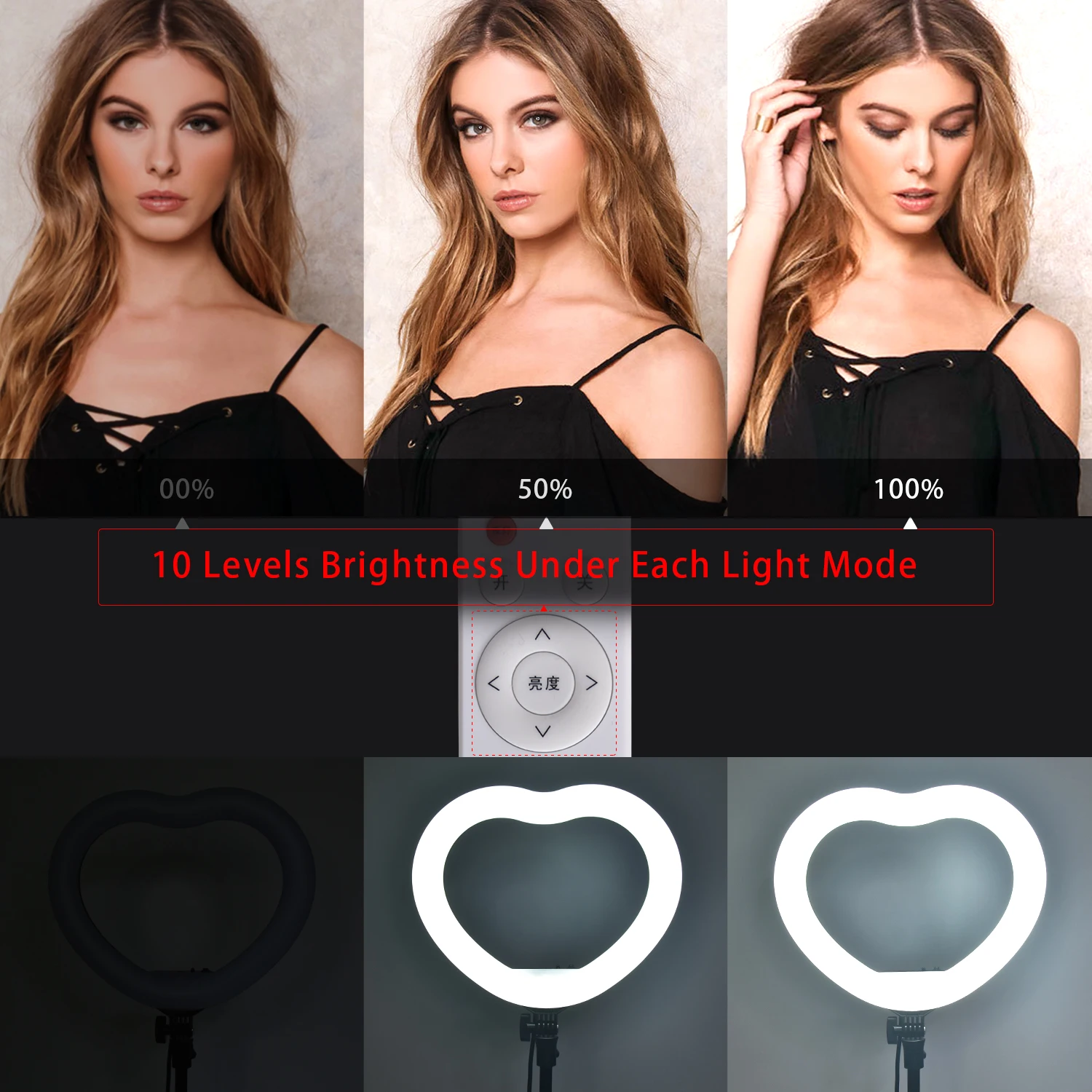 Fosoto FT-X258 LED 3200K-5600K двухцветная лампа в форме сердца для фотосъемки и дистанционный Штатив для студийного телефона камеры макияж