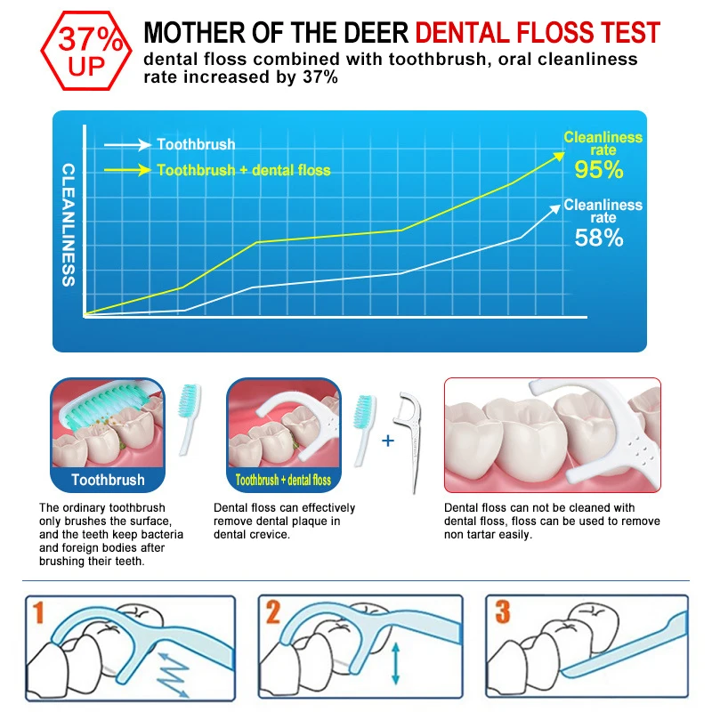 -Функционально удаляет чумы и мусор, до которых не доходят обычные зубные щетки, легко скользит между зубами.