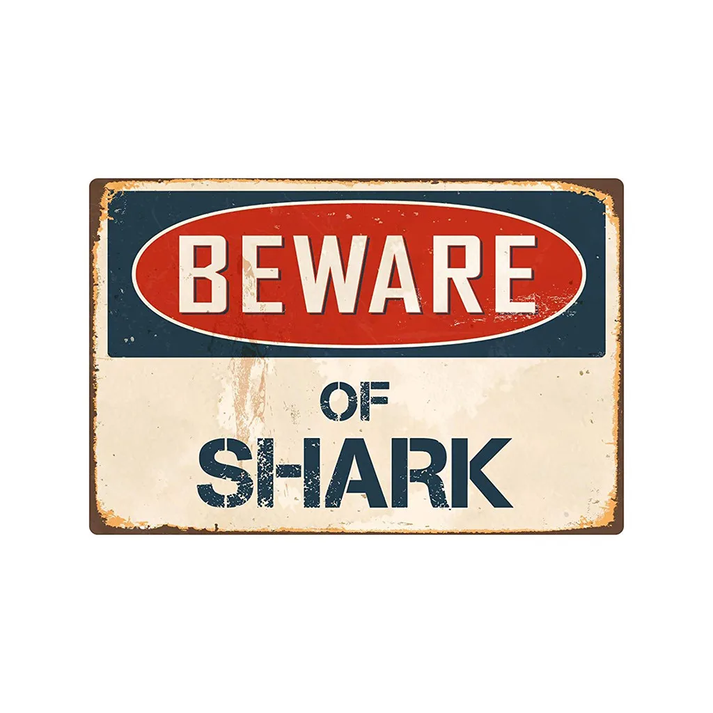 Остерегайтесь акулы металлический знак флаг табличка бар клуб кафе Гараж Декор стены искусства