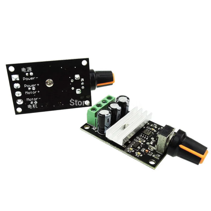 Этот контроллер скорости двигателя постоянного тока позволяет контролировать направление двигателя постоянного тока с помощью импульсного модулированного (ШИМ) напряжения постоянного тока с циклом работы, полностью регулируемым от 0%-100%.