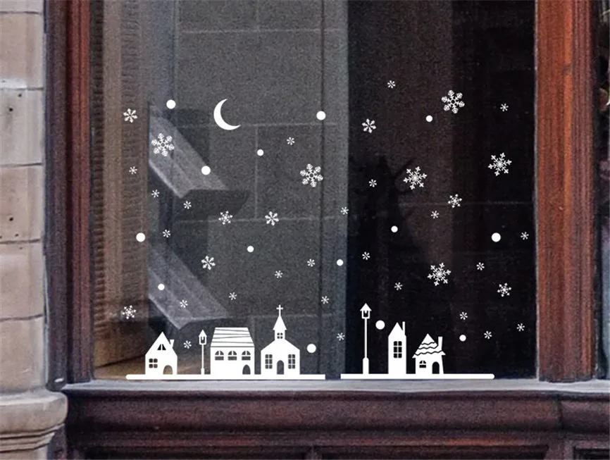 Рождественский магазин окно украшение стены стикеры, рождественские снежинки город