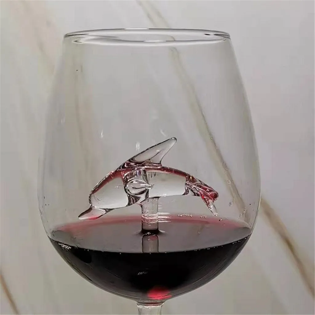 Премиальный дизайн: бокал для красного вина в виде акулы имеет вращающуюся кристальную акулу внутри.