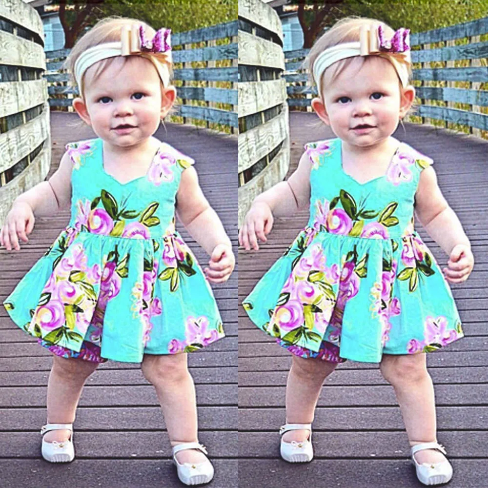 Одежда для маленьких девочек с цветочным рисунком Сарафан с принтом; Повседневное платье принцессы